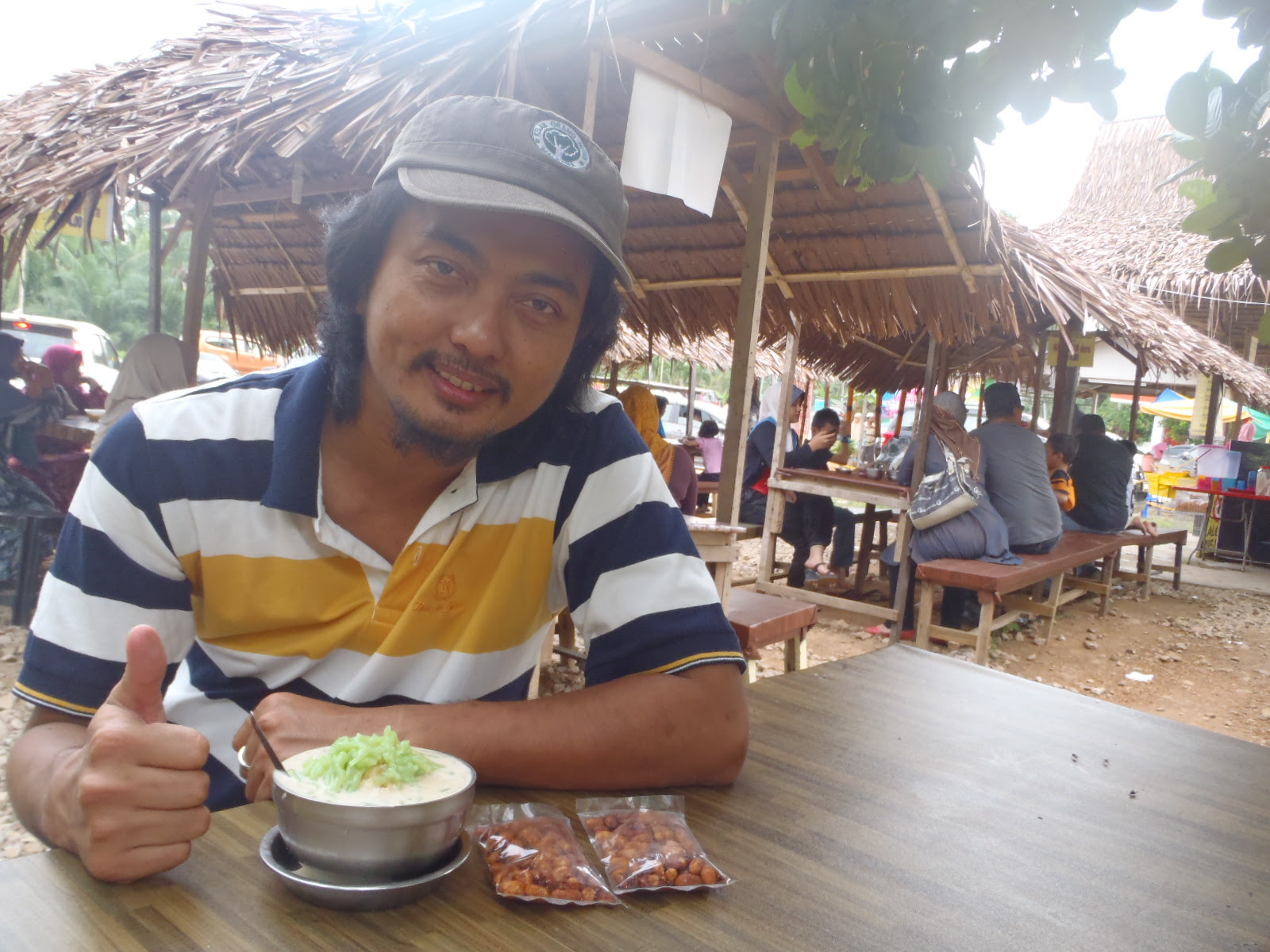 Harga pun tak la mahal sangat dari RM2 hingga RM3.5. Bagi Orang Fakir Miskin dan OKU cendol ini adalah percuma dengan syarat kena menunjukkan kad JKM. Gerai ini juga Unik kerana dibuat beratapkan atap Rumbia. dan nampak macam ala2 kampung bersesuaian dengan kawasan kampung sekeliling. Pengunjung memang ramai kalau tak silap sampai magrib pun masih buka. Tapi tak pasti pulak ia buka sampai malam atau tak.